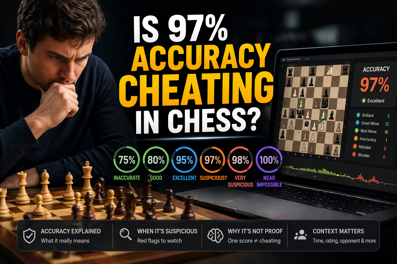 Is 97% Accuracy Cheating in Chess? What 75%, 80%, 95%, 98% and 100% Accuracy Really Mean